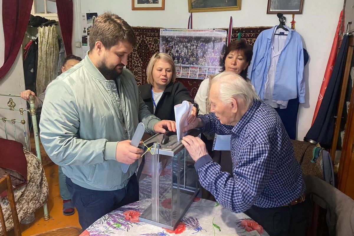 Ветераны Великой Отечественной войны голосуют на выборах в городскую Думу
